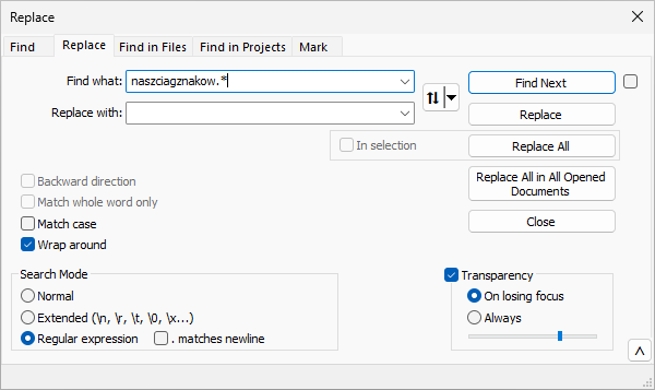 Ciąg znaków oraz wszystko co jest po tym ciągu znaków do końca linii: